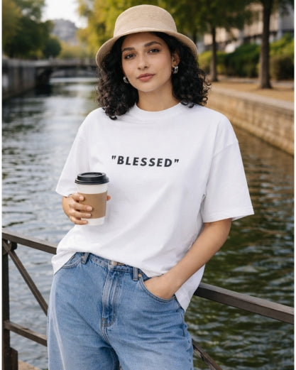 Introducing the text graphic, the perfect addition to your casual wardrobe. Made from comfortable cotton fabric, this t-shirt features an oversized fit that provides a relaxed, laid-back feel. The round neck and half sleeves add to the comfortable and easy-going style of this t-shirt.