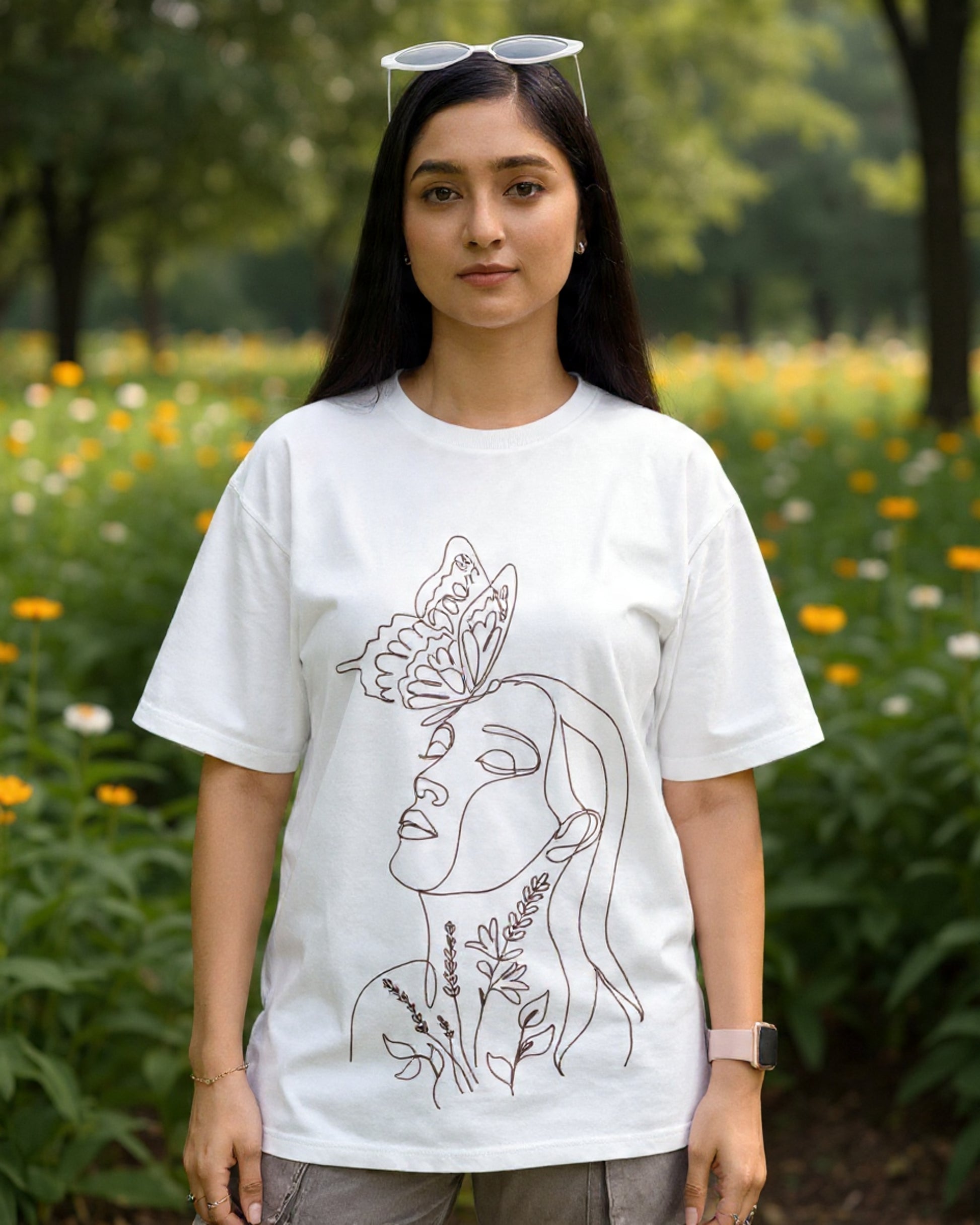 Introducing the asthetic print tshirt, the perfect addition to your casual wardrobe. Made from comfortable cotton fabric, this t-shirt features an oversized fit that provides a relaxed, laid-back feel. The round neck and half sleeves add to the comfortable and easy-going style of this t-shirt.